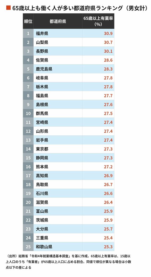 65歳以上も働く人が多い都道府県ランキング 3位長野県で2位は山梨県…それでは1位は?