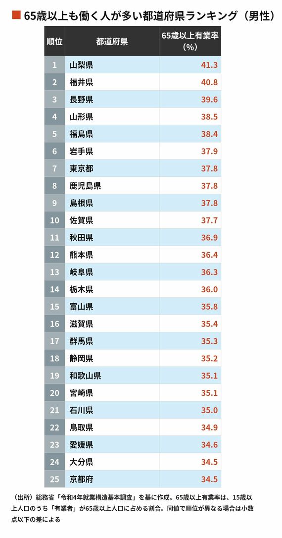 65歳以上も働く人が多い都道府県ランキング 3位長野県で2位は山梨県…それでは1位は?