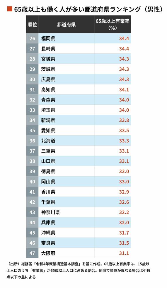 65歳以上も働く人が多い都道府県ランキング 3位長野県で2位は山梨県…それでは1位は?