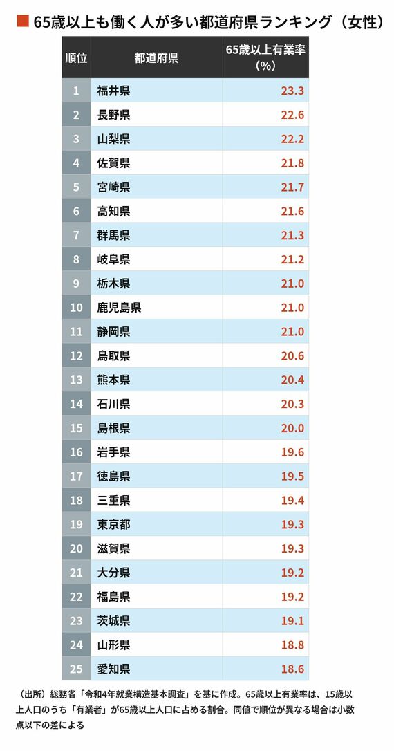 65歳以上も働く人が多い都道府県ランキング 3位長野県で2位は山梨県…それでは1位は?