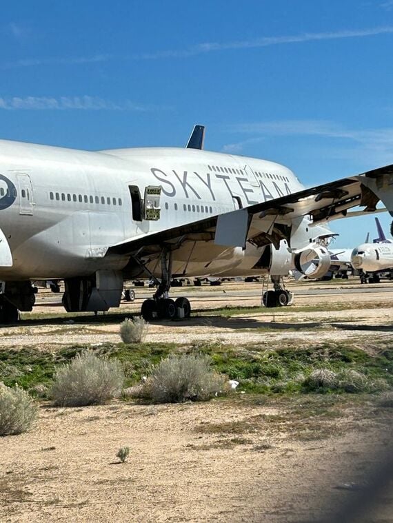 飛行機の墓場といえばモハーべ空港が有名だが、その近くのビクタービル(サザン・カリフォルニア・ロジスティックス空港)もJAL・ANAを含めて退役機が多い。モハーべ空港とは異なり、こちらはレンタカーがあれば、機体の近くまで近寄ることができる。