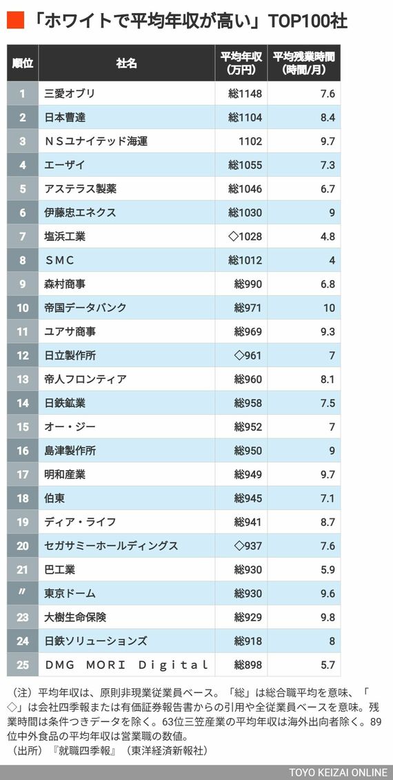 「ホワイトなのに平均年収も"高い"」TOP100社 トップ8社は残業10時間以下で平均年収1000万円超 《27卒向け最新》