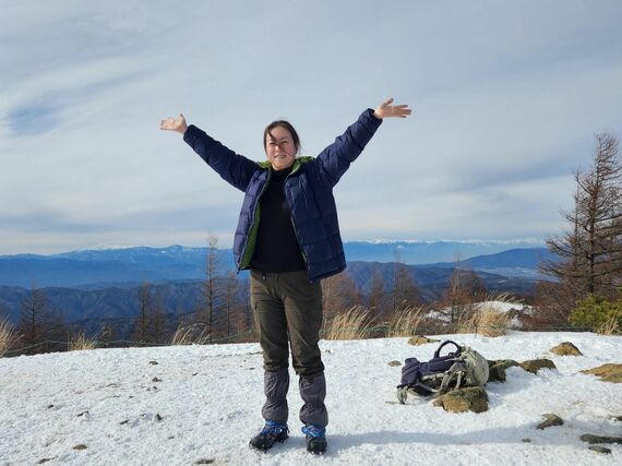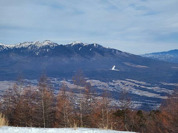 「おー」と、思わず声を上げてしまったほどの、山頂からの眺め。見渡すと360度、遠くに雪を被った山々が連なっています。