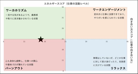 Rさん(以下、R):はい。仕事への向き合い方が低く、「リラックスゾーン」という結果でした。ただ、数値としてはギリギリ「ワーカホリズム(仕事中毒)」寄りになっています。