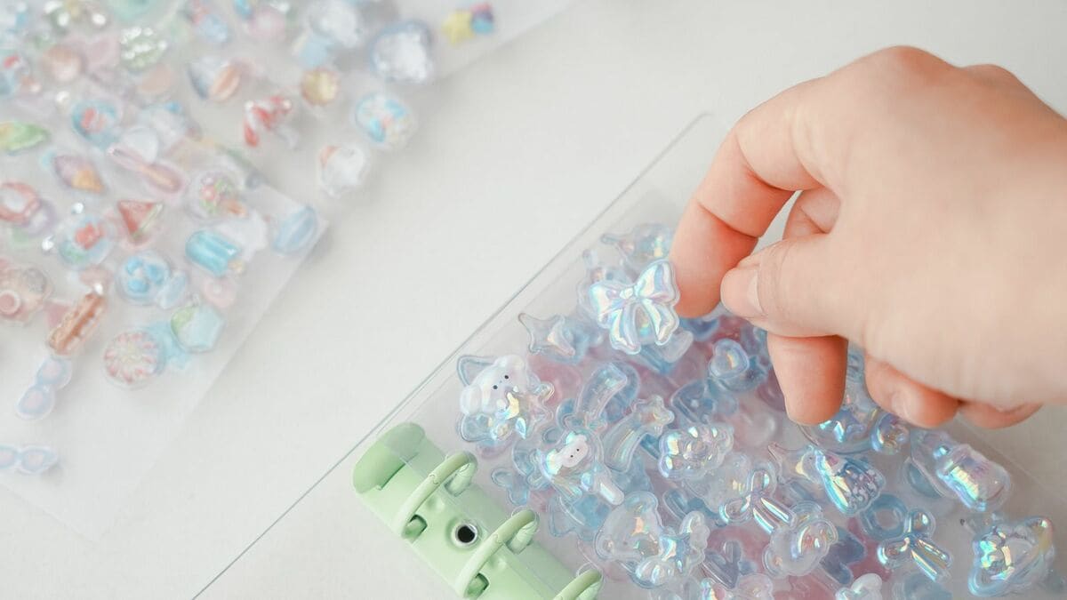 平日夕方、東京都内のファミレス。テーブルいっぱいに広がるのは、立体的なシールがぎっしり貼られたシール帳。学習塾に通う前の小学生女子4人が、夢中でページをめくっていた。