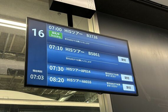 また、バスタ八重洲では23年秋からは路線バスだけでなく、ツアーバスや貸切バスの発着も始まっており、1月のある日に訪れた時には、HISのツアーバスが4本立て続けに出発する盛況ぶりであった。