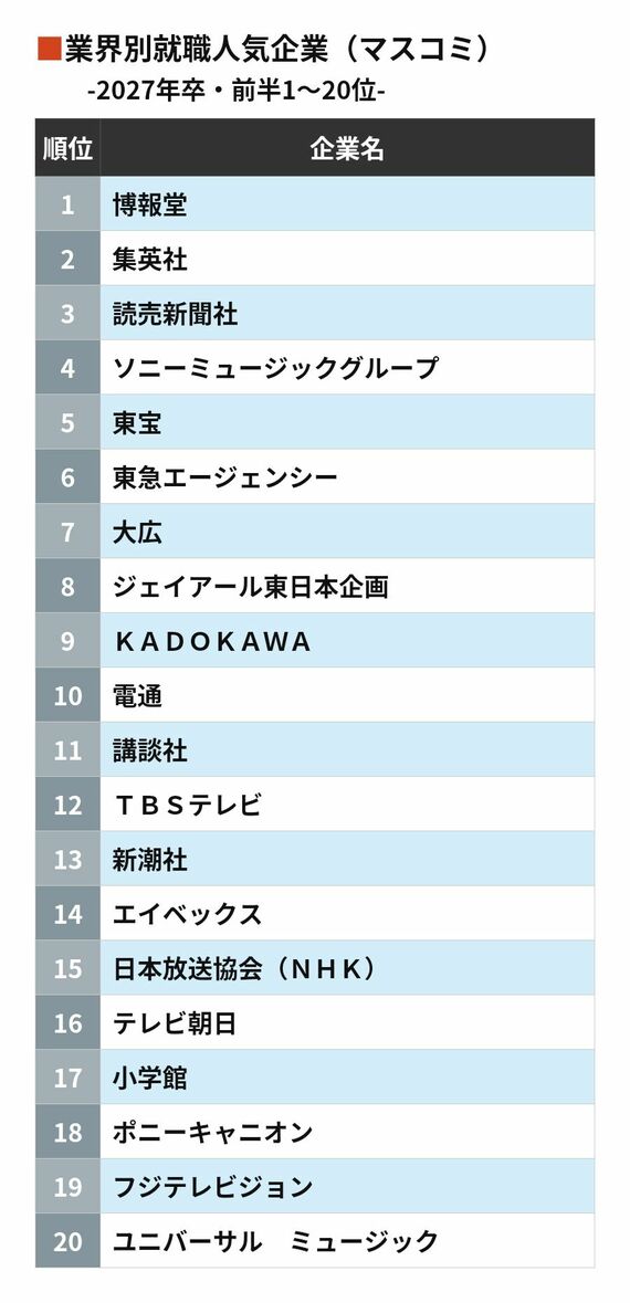 就活生が選ぶ業界別「就職人気ランキング」 1万9000人の学生が投票した結果
