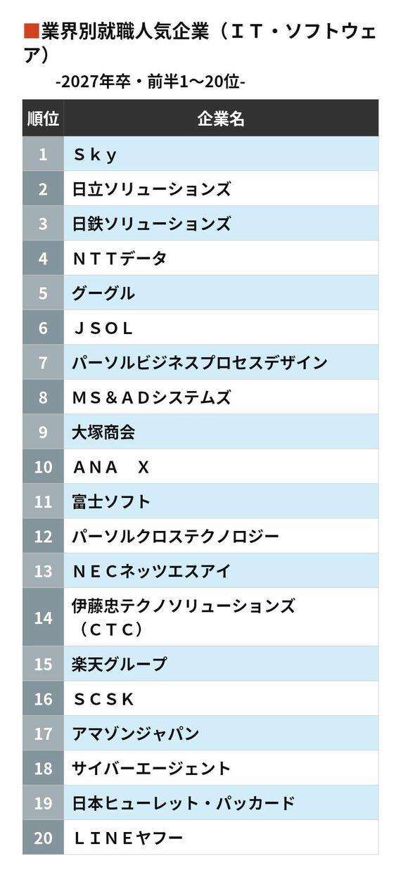 就活生が選ぶ業界別「就職人気ランキング」 1万9000人の学生が投票した結果