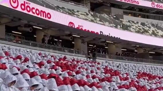 NTTドコモが国立競技場(MUFGスタジアム)で行った入社式が、SNS上で話題になっている。新入社員が“ロゴマークの人文字”を形作り、ギネス世界記録に挑戦する試みが実施されたのだが、それに対して「ハラスメントではないか」との批判が出ているのだ。