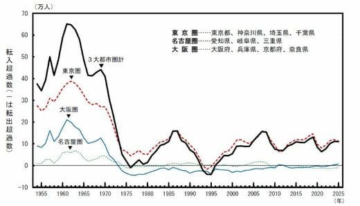ちなみに、こんなことを言うと「じゃあ、都心一極集中と言われている状況と整合性が取れないではないか。都心一極集中なら鉄道資本主義のほうが栄えるのでは?」と思われるかもしれない。ただ、政府の資料をよく見ると人口が増加しているのは、「東京」ではなく「東京圏」という、東京西部や千葉・神奈川・埼玉までをも含んだ地域で、そもそも都心集中とは「都心とその郊外一極集中」である。