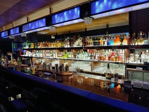 4階のバー&レストランもヤバイ。店内は「これ完全に5つ星ホテルのバーじゃん!」と目を丸くするほど、洗練された大人の空間が広がっている。値段もリーズナブル。ビール1杯1100円、カクテルも同価格帯から楽しめる。私が利用した際は1000円以上の利用で1杯無料、ドリンクサービス券が配布されており、実質1杯550円で楽しむことができた。