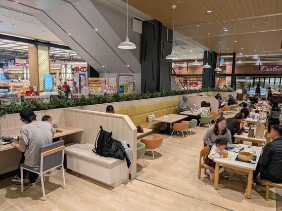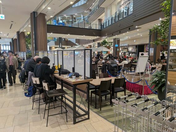 もちろん家族向けの、子どもでも足が地面につく椅子を備えた座席もあった。やはりイオンモールといえば、なんだかんだいってもファミリー向けを意識するのだろうが、こうしたバリエーション豊かな座席たちは駅近モールという特性の影響もあるのだろうか。