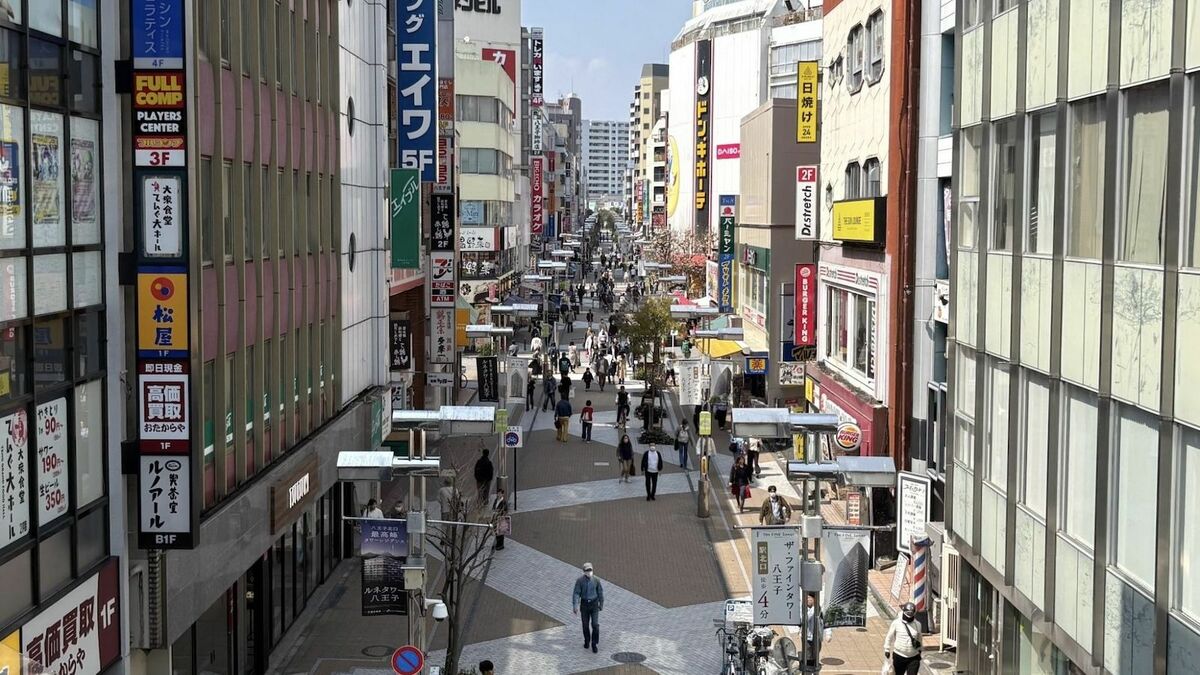 JR八王子駅の改札を出ると、人の流れがある。ペデストリアンデッキを渡り、北口・南口・甲州街道へ延びる西放射線ユーロード方面へと散っていく。しかし「買い物を楽しんでいる」という感じではなく、みんな目的地に向かって歩いていて、立ち止まっている人が少ないように見える。
