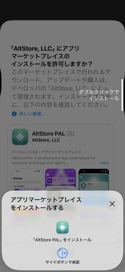 「許可」をタップし、表示された画面でもう1回「許可」をタップすれば、あとは通常のアプリと同じ手順。サイドキーのダブルクリックとFace IDでの認証(ホームボタンのある端末だとTouch IDになる)が求められる。「アプリライブラリ」でAltStore PALがインストールされていることを確認しよう。あとは、アイコンをタップするだけだ。