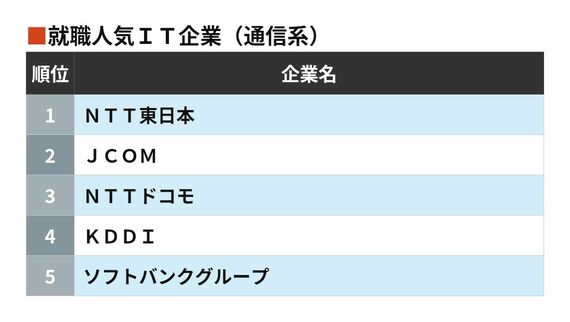 就活生からの人気が高い「IT企業ランキング」 グーグルやアマゾンだけじゃない人気企業の名前