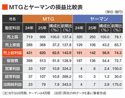 比較的、類似した商品を扱っている同業大手のヤーマンと比較するとMTGの経営のポイントが見えてきます。