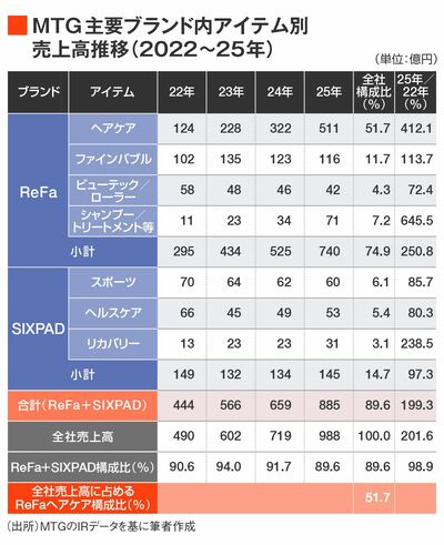 今やMTGはシックスパッドの健康機器メーカーではなく、ヘアケアブランド・リファで成り立つ美容機器メーカーなのです。