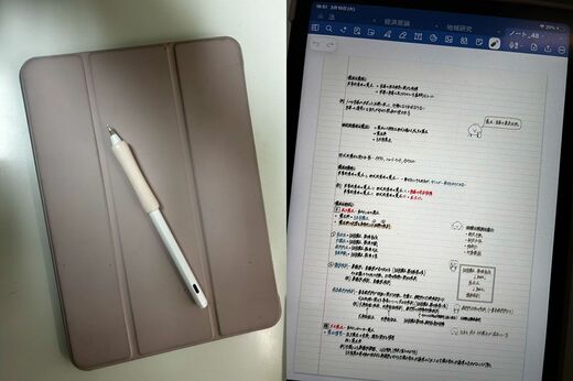 高校入学後はiPadも学習に導入。授業プリントをiPadのカメラで撮影してデジタル管理し、電子的に赤シート効果を再現できるアプリを活用した。
