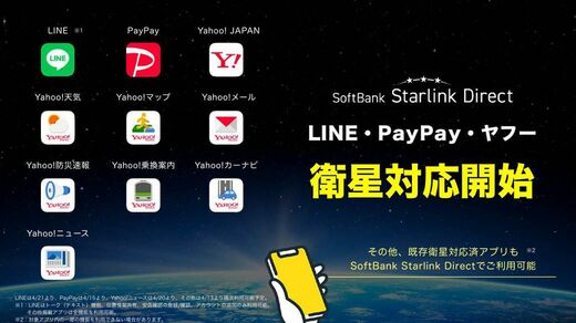 ソフトバンクが打ち出したのはアプリの対応だ。グループ会社のLINE、PayPay、Yahoo! JAPANを衛星通信に対応させた。圏外でもLINEのテキストメッセージや位置情報を送受信でき、これまでの登山アプリや防災アプリ中心の対応から一歩踏み出した。