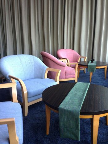「そこで、まずは1部屋だけ、ご当地部屋『遠州つむぎの間』として、遠州綿紬をテーマに部屋作りをさせていただきました。それが好評で、最終的には全館コーディネートさせていただいたんです」