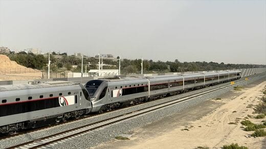 旅客列車については、2026年中にアブダビとドバイ、フジャイラを結ぶ11駅の区間で運行を開始する予定で、その後は駅や路線を段階的に拡張する計画だ。車両はスペインのメーカーCAFが設計・製造した、大出力のディーゼル機関車を両端に連結した編成を導入している。最高速度は時速200kmだ。