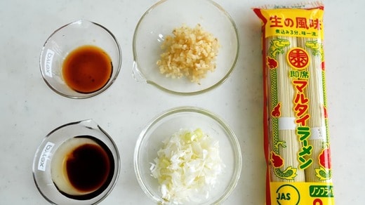 もともと生麺よりもベタつかない乾麺が向いている料理ですが、中国の麺は入手が簡単ではありません。そこでこのレシピでは、九州民にはおなじみの「マルタイ棒ラーメン」を使います。