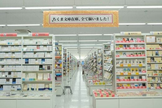 6600㎡ほどのワンフロアの売り場が、まず目に飛び込んでくる。白を基調としたシンプルな空間に、白い棚が奥まで整然と並んでいる。本棚の端に立って眺めると、遠くに立つ人の姿は小さく霞む。
