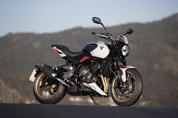 エンジンは水冷並列3気筒798ccで、最高出力は115ps。中速域の厚みから高回転の伸びまでスムーズにつながり、扱いやすさとパワー感を高い次元で両立する。新設計のエアボックスと吸気系により、トライアンフらしい重厚な3気筒サウンドもさらに磨きがかかっている。