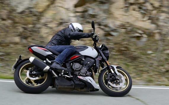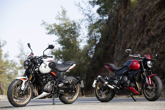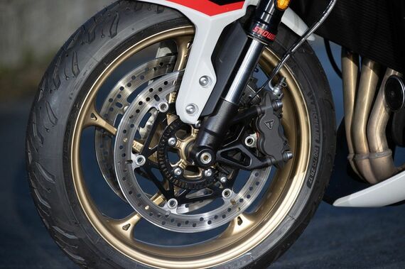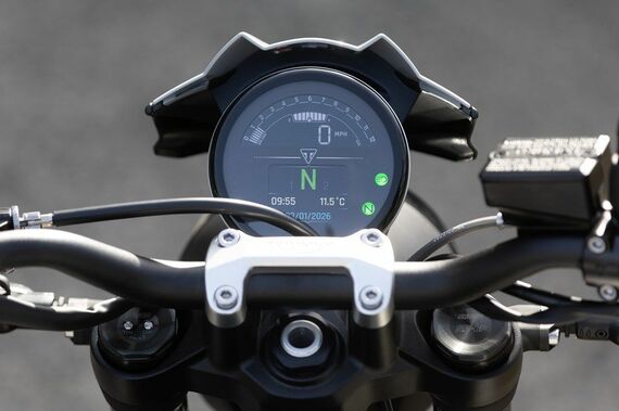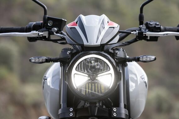 新しさと伝統が自然に溶け合った、いかにもトライアンフらしい1台だ。弟分のトライデント660と比べると全体に引き締まり、よりスポーティで精悍な雰囲気に仕上がっている。