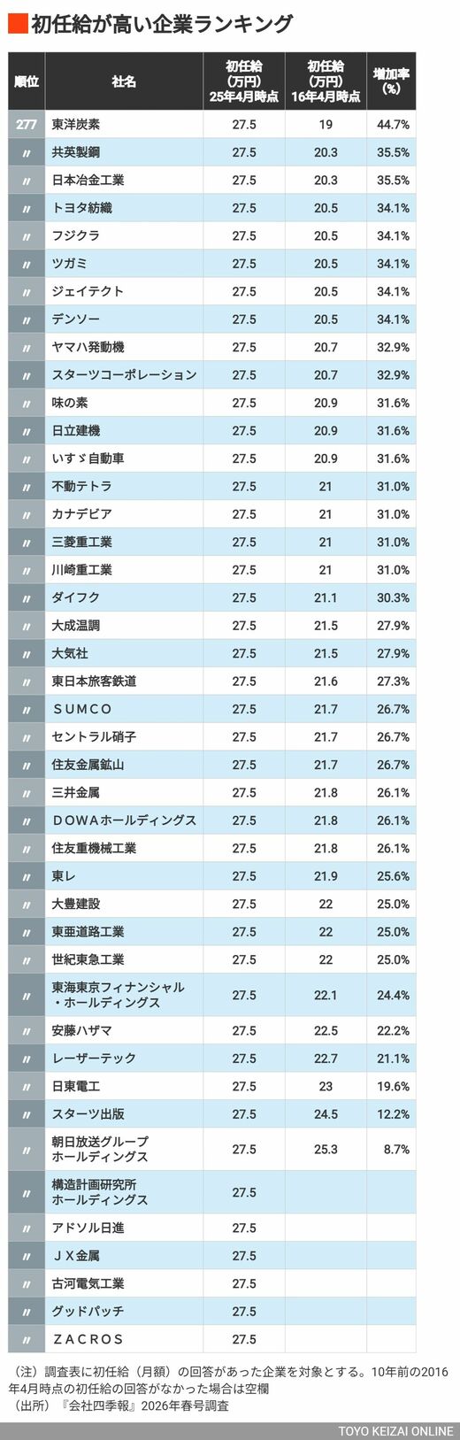 キャリア・教育 「初任給」が"高い"企業ランキングTOP319社 ソニーグループは26位、三菱商事は8位――1位はどこか? 4分で読める 公開日時:2026/04/24 05:00 初任給が高い企業はどこなのか(出所)『会社四季報』2026年春号調査 ジェ・シャンシン 東洋経済データ事業局 フォロー 1/14 PAGES 2/14 PAGES 3/14 PAGES 4/14 PAGES 5/14 PAGES 6/14 PAGES 7/14 PAGES 8/14 PAGES 9/14 PAGES 10/14 PAGES 11/14 PAGES 12/14 PAGES 13/14 PAGES 14/14 PAGES 277位は?