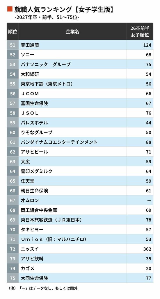 女子学生版51〜75位