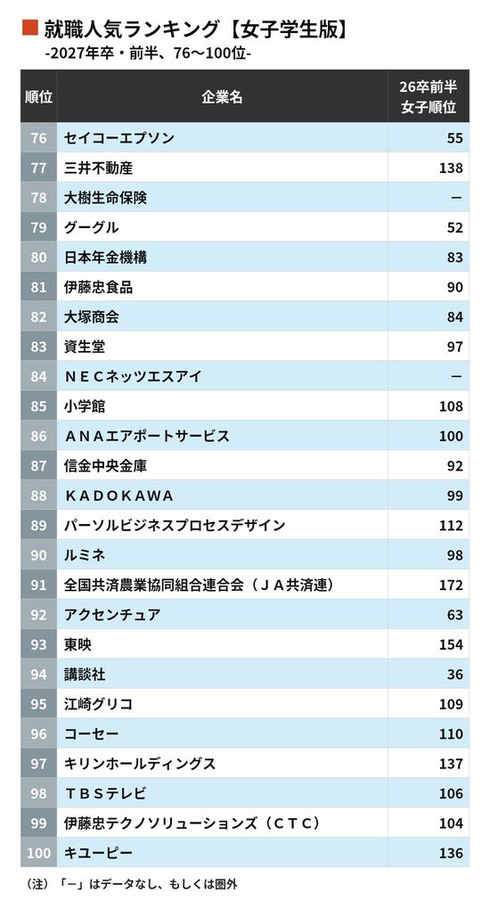 女子学生版76〜100位