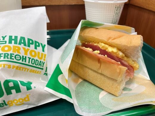 さて、さっそく公園でサンドイッチを食べよう。空いていたベンチにふたりで座ってサブウェイの袋を広げる。待ちきれない娘は思いっきりハムたまサンドにかぶりついた。