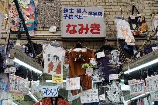 アニマル柄を受容するということは、そもそも動物を愛する人たちが多いのだろう。動物モチーフの看板やオブジェがほうぼうから目に飛び込んでくる。どれも怒っているのに、ほほえましい。天王寺動物園ならぬ、ここはもはや天神橋筋動物園である。