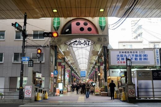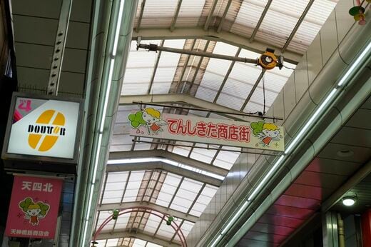 このテントウ虫から「てんよん」こと天神橋筋四番街が始まり、JR大阪環状線「天満」駅から北は天4北(てんしきた)商店会と名を改める。