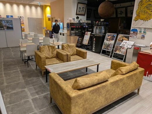 オープン時の情報によると、席数は264席。そこまで多くはないが充電コーナーのあるカウンター席に通常のテーブルセット、ソファ席やひじ掛け付きの椅子もあったりと結構のんびりしやすい。