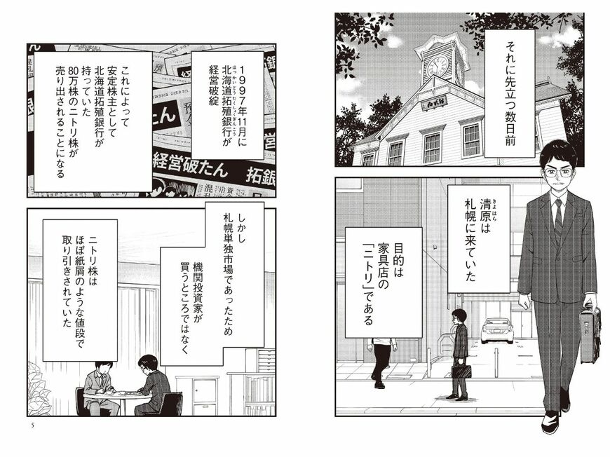 『マンガ清原達郎 わが投資術2』では、タワー投資顧問に入社した清原氏が割安小型株をいかに発掘して運用していくかが描かれる。運用に失敗し、損失が膨れ上がった経験も赤裸々に綴られる
