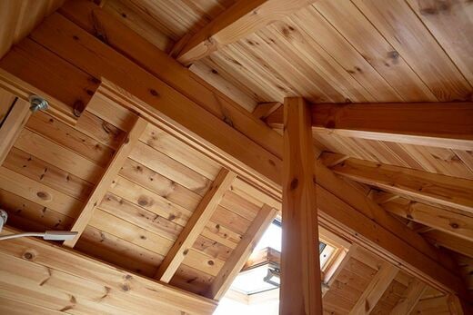 Nさんの“小屋”は2023年12月に着工し、2024年3月に完成した。工期は意外と短い。重機を使用せずに息子さんと2人で組み立てたため、棟木を上げる際にはロープで引き上げたという。