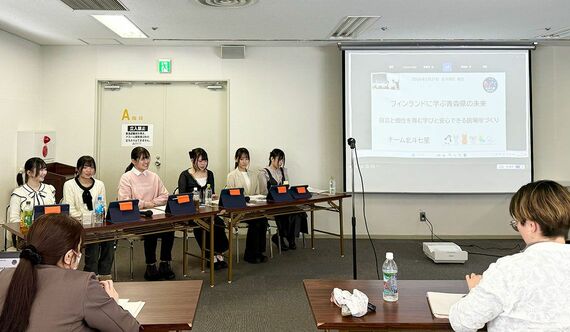 フィンランドでのフィールドワークは10月25日から5泊8日。掲げたテーマは「フィンランドに学ぶ青森県の未来-自立と個性を育む学びと安心できる居場所づくり-」だ。帰国後、不登校支援の取り組みがフィンランドでの学びによってどう深まったのか、 地域の人も招いた報告会で生徒が“自らの言葉”で語った。