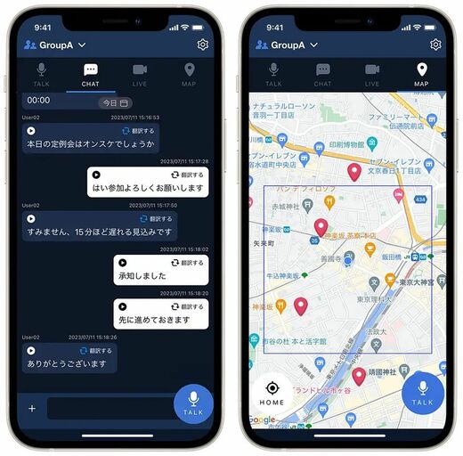 バディコムのような無線アプリを提供する会社はNECネッツエスアイ、モトローラなどがあり、マイクロソフトのTeamsにもトランシーバー機能がある。しかし、「音声通話、映像配信、文字起こし、翻訳、MAP通話、AIといった機能をすべて提供しているのは当社だけ」とサイエンスアーツの担当者は胸を張る。