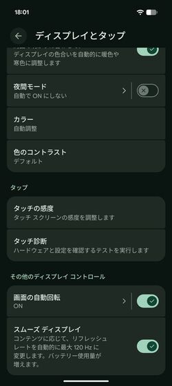 設定方法は次のとおり。「設定」アプリで「ディスプレイとタップ」を開き、画面下の「スムーズディスプレイ」を有効にするだけだ。設定アプリを上下に素早くスクロールさせたり、アプリのドロワー(アプリ一覧)を高速で呼び出したりすれば、違いがわかりやすいだろう。