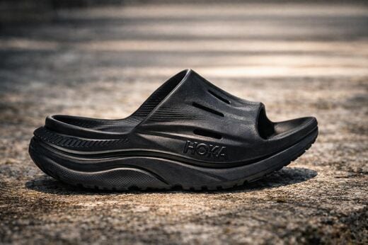 HOKAの「オラ リカバリー スライド 3」を箱から出してまず感じたのは、いかにも機能性を重視した一足だということだった。ソールはかなり厚く、一般的なスライドサンダルと比べても存在感がある。