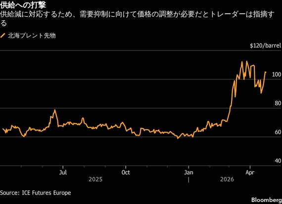 この重要な原油輸送路の再開が長引くほど、少なくとも10%減少した供給に見合うよう、消費はさらに下方修正を迫られるとトレーダーは指摘する。そのためには、価格高騰で購入できなくなるか、あるいは政府の介入による消費抑制で購入量が減る必要がある。