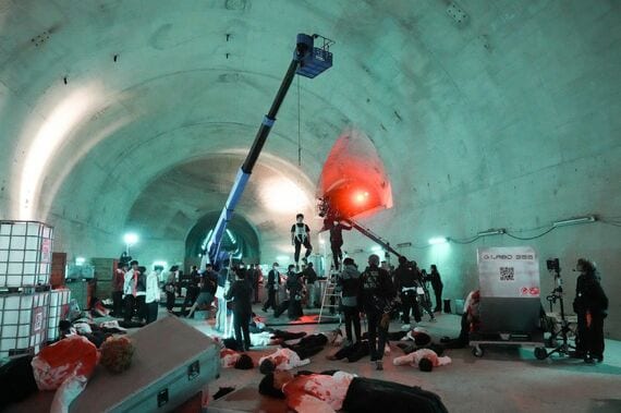 また、本作の世界観を表現するためには、「自然光が入ってはいけない」という条件がありました。しかし清掃工場での撮影では、暗幕を張ってもどうしても光が漏れてしまうことから、撮影は夜間限定となりました。