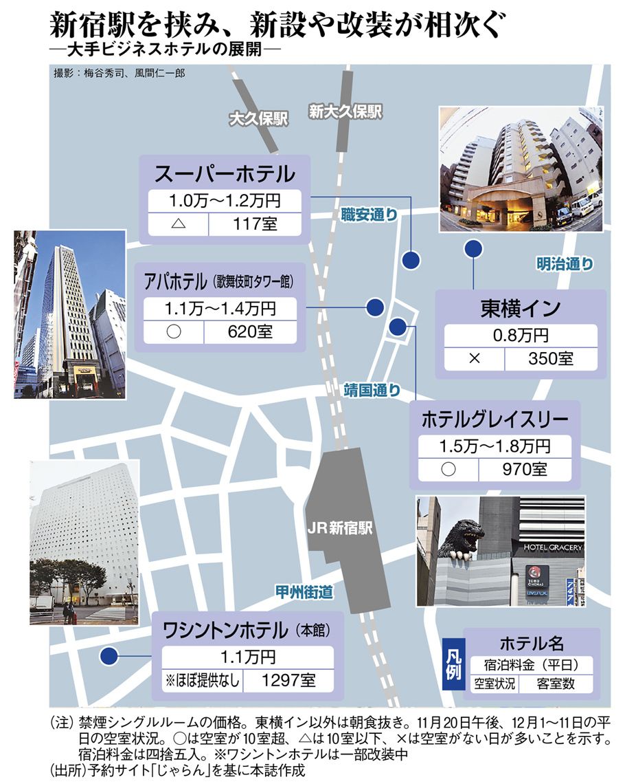 さらには駅を挟んだ西口にある「ワシントンホテル」本館の改装にも着手。16年春の再開時には、客室数が約2600室と、新宿駅周辺で断トツの規模となる予定である。