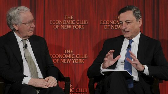 3日の定例理事会で、ECBは民間銀行が中銀に預ける資金に課している手数料率(マイナス金利)を現行の0.2%から0.3%に拡大する追加の金融緩和を決めた。民間銀行の市中貸し出しを促す意図で、100億円預けると3000万円の手数料。消費者物価がマイナス0.1%なので、実質2000万円の預け入れコストとなる。