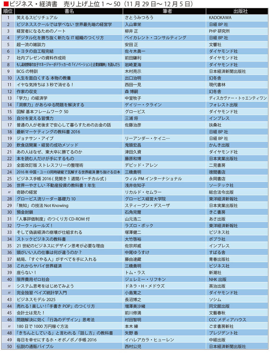 ライフ #Amazon週間ビジネス・経済書ランキング 前の記事 次の記事 最新!ビジネス・経済書「売れ筋」ランキング 「もしドラ」の第2弾はどこまで伸びるか? 2分で読める 公開日時:2015/12/07 21:40 東洋経済オンライン編集部 フォロー 1/5 PAGES 2/5 PAGES 画像を拡大 次ページが続きます:【51~98位は?】 3/5 PAGES 4/5 PAGES 5/5 PAGES