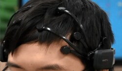 この(頭部に装着する)装置には16個のセンサーが搭載され、EGGシグナルを運転者の脳から読み取る。その後、コンピュータープログラムが、関連性の高いシグナルを選んで翻訳することにより、車を運転することが可能になる。