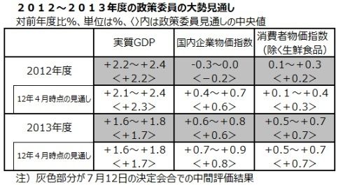 日本銀行は12日の金融政策決定会合で現状維持の方針を全員一致で決定。景気の判断も前回会合と同様に「緩やかに持ち直しつつある」とし、4月に「経済・物価情勢の展望」で示した成長率や物価見通しに対する中間評価も大きな変更はなかった。