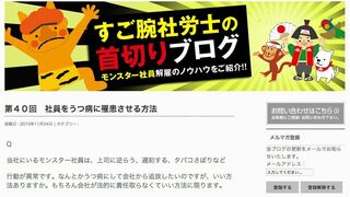 ブログは「すご腕社労士の首切りブログ」というタイトルで、「モンスター社員の解雇のノウハウをご紹介!!」とある。会社目線で、会社にとって迷惑な社員に対する対抗策を紹介していた。
